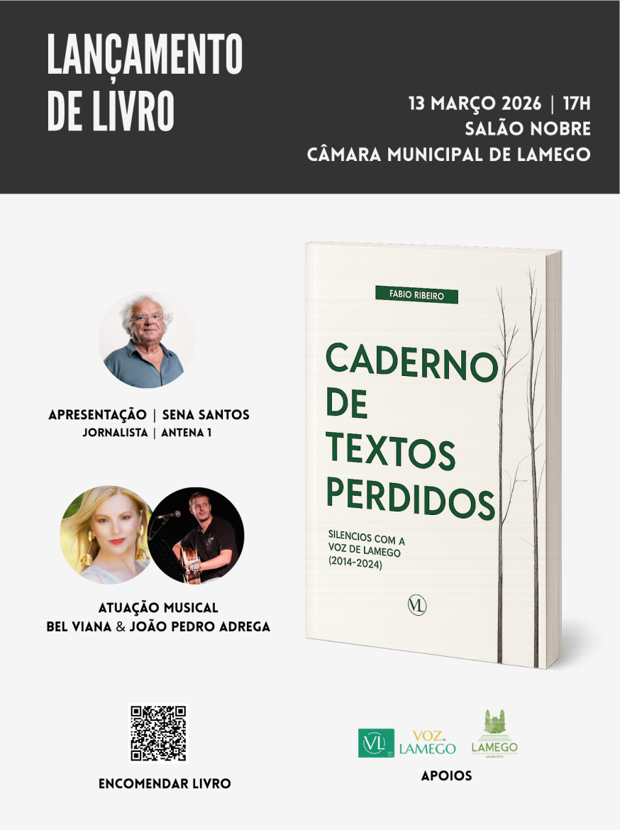 O Salão Nobre dos Paços do Concelho de Lamego vai receber a apresentação pública do livro "Caderno de Textos Perdidos – Silêncios com a Voz de Lamego (2014-2024)", da autoria de Fábio Ribeiro. O evento decorre na próxima sexta-feira, dia 13, pelas 17 horas. A entrada é livre. A apresentação da obra e do seu autor estará a cargo de Francisco Sena Santos, jornalista da Antena 1, onde conduz os programas “Um […]